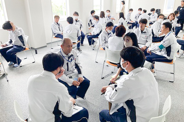当社では、社長と若手社員が会社と個人の成長に対する思いや課題について、ざっくばらんにディスカションを行う機会として、座談会を実施しています。2017年より各事業所にて実施し、若手社員からは、普段抱えている悩みや現場での課題について社長と直接話せる機会となり、仕事のやりがいや組織活性化につながっています。また「安全」や「品質」などのテーマ別にキーマンと社長による座談会に拡大しています。引き続き、人材交流を図り、組織活性化の一環として実施していく予定です。